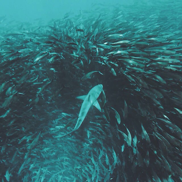 They saved the best bit til last and I still can’t work out how they definitely know that these animals are going to be there… We were just swimmingly along merrily and suddenly realised that underneath us was a MASSIVE school of fish that clung together and moved as one entity. There were 6 sharks all just cruising along beside it and a sea lion was playing around swimming through the fish, which would just part to make way for it, and then it’d chase the sharks and nip at their tails. My words can’t do it justice and if anyone was above water they would’ve heard some pretty strange squealing noises coming out of my snorkel.