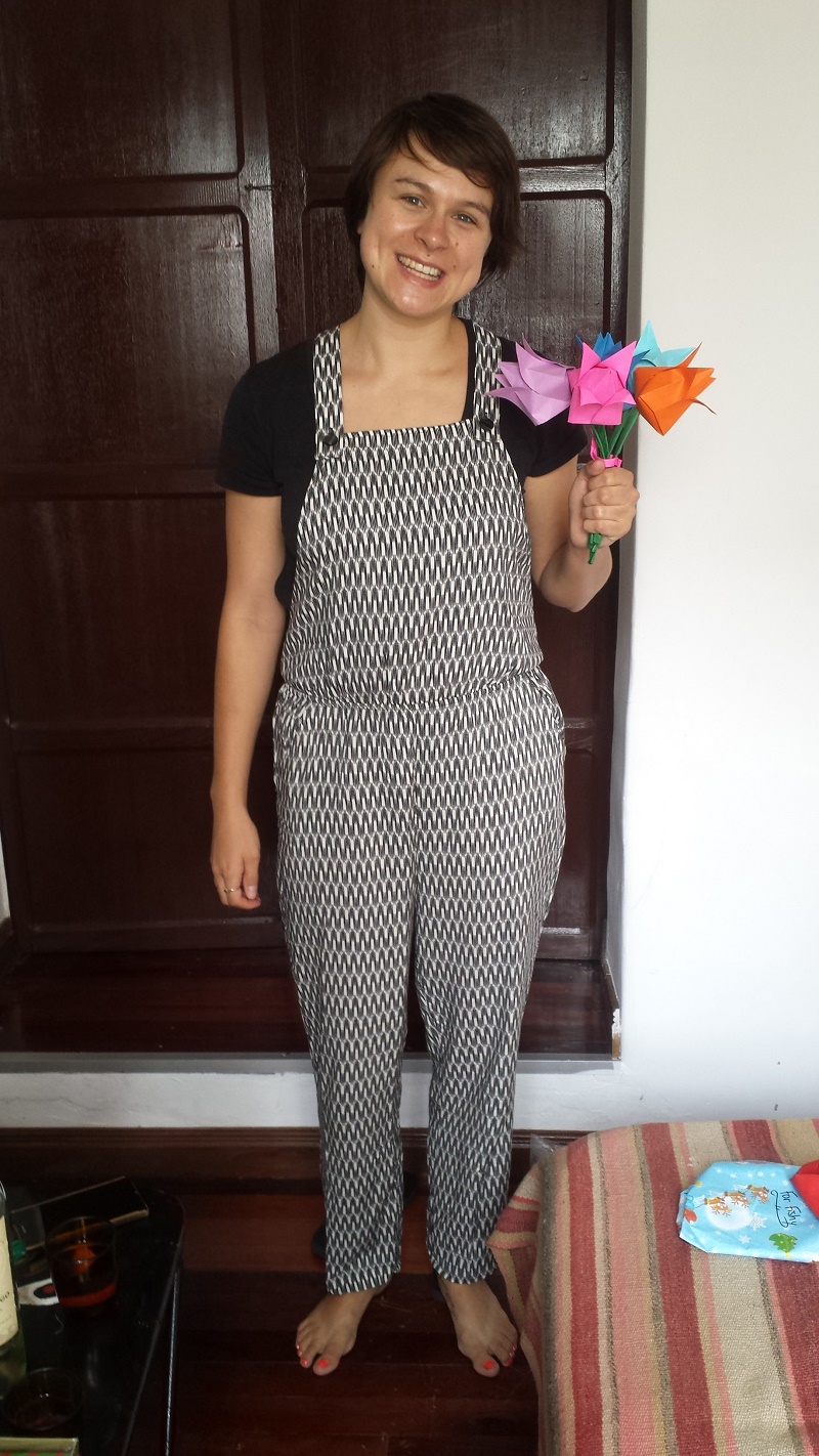20151225_113820 January 10, 2016 800 × 1422 That Won’t Stop The Roast – Our Festive Season in Bolivia and Chile Fish origami’d me some tulips. Mary gave these fabulous overalls