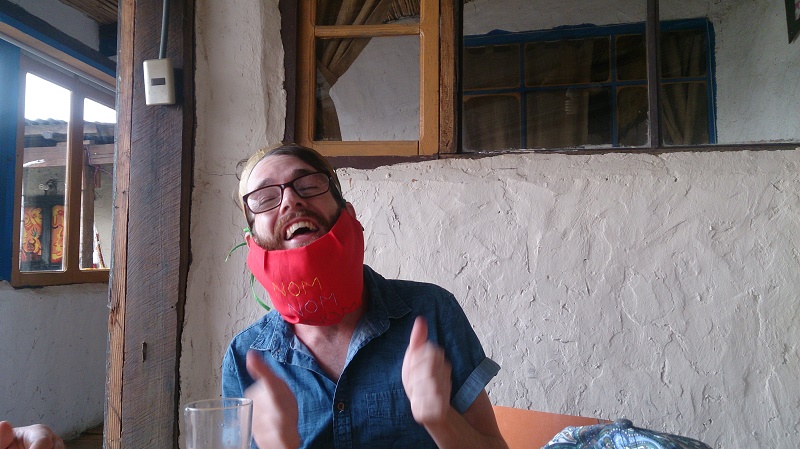 DSC_0427 January 10, 2016 800 × 449 That Won’t Stop The Roast – Our Festive Season in Bolivia and Chile I fashioned FIsh a beard cover to hopefully stop so much food ending up in it.