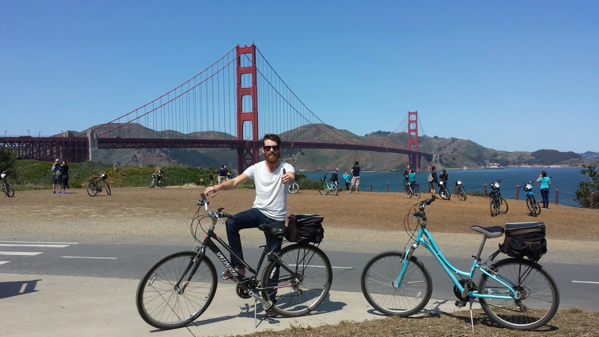 The first day we were in San Francisco we knocked over a LOT of the major touristy stuff. It was a brilliant day! We walked down to Fisherman’s Wharf via Lombard Street- the windiest (as in curved, not windy. Same word… weird…) street in the world. We then hired bikes and rode what ended up being 30kms – along the water (beautiful parks, beach, views of the Golden Gate Bridge, tourists, sunshine), over the Golden Gate Bridge (very windy, longer than you expect), back over the Bridge and along the water front, through town to Golden Gate Park, back through the Presidio (an area that was an old naval and army base but is now all museums and some houses) and back to Fisherman’s Wharf. It was the most exercise I’ve done in a long time but it was so much fun.