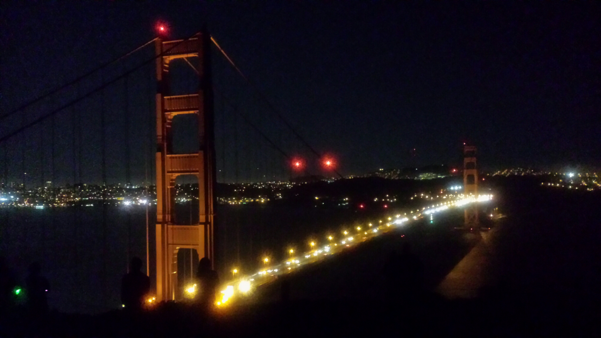 Our last night in SF we spent actually hanging out with our wonderful host, Danny. He was such a great dude. His couchsurfing profile didn’t list his age and we nearly fell over when he told us he was 53. I wouldn’t put him a day over 40; I guess that’s just a testament to remaining child-free. Danny drove us all over San Fran – dinner at a great Japanese place, then along the coast to some beautiful view points that overlooked the city and the Bridge, including Twin Peaks and over the Bridge itself.